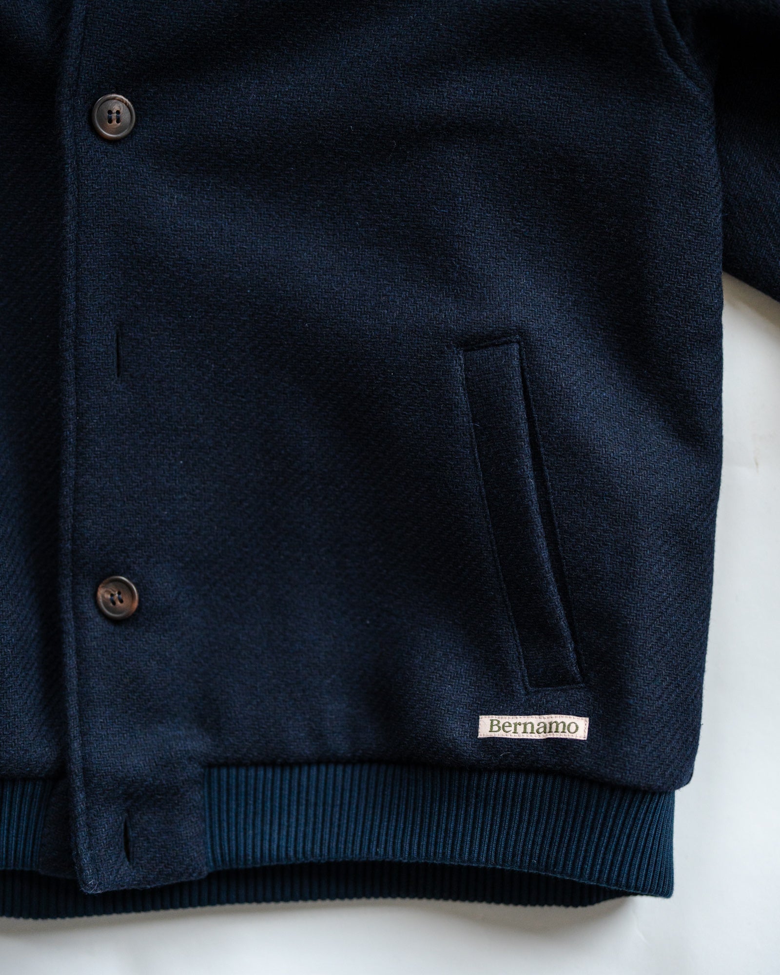 Het jasje is gevoerd met onze kenmerkende roze stof versierd met het Bernamo-logo, wat een unieke touch toevoegt aan dit klassieke ontwerp. Gemaakt in Portugal met aandacht voor detail, is dit veelzijdige stuk perfect voor zowel casual als verfijnde looks.