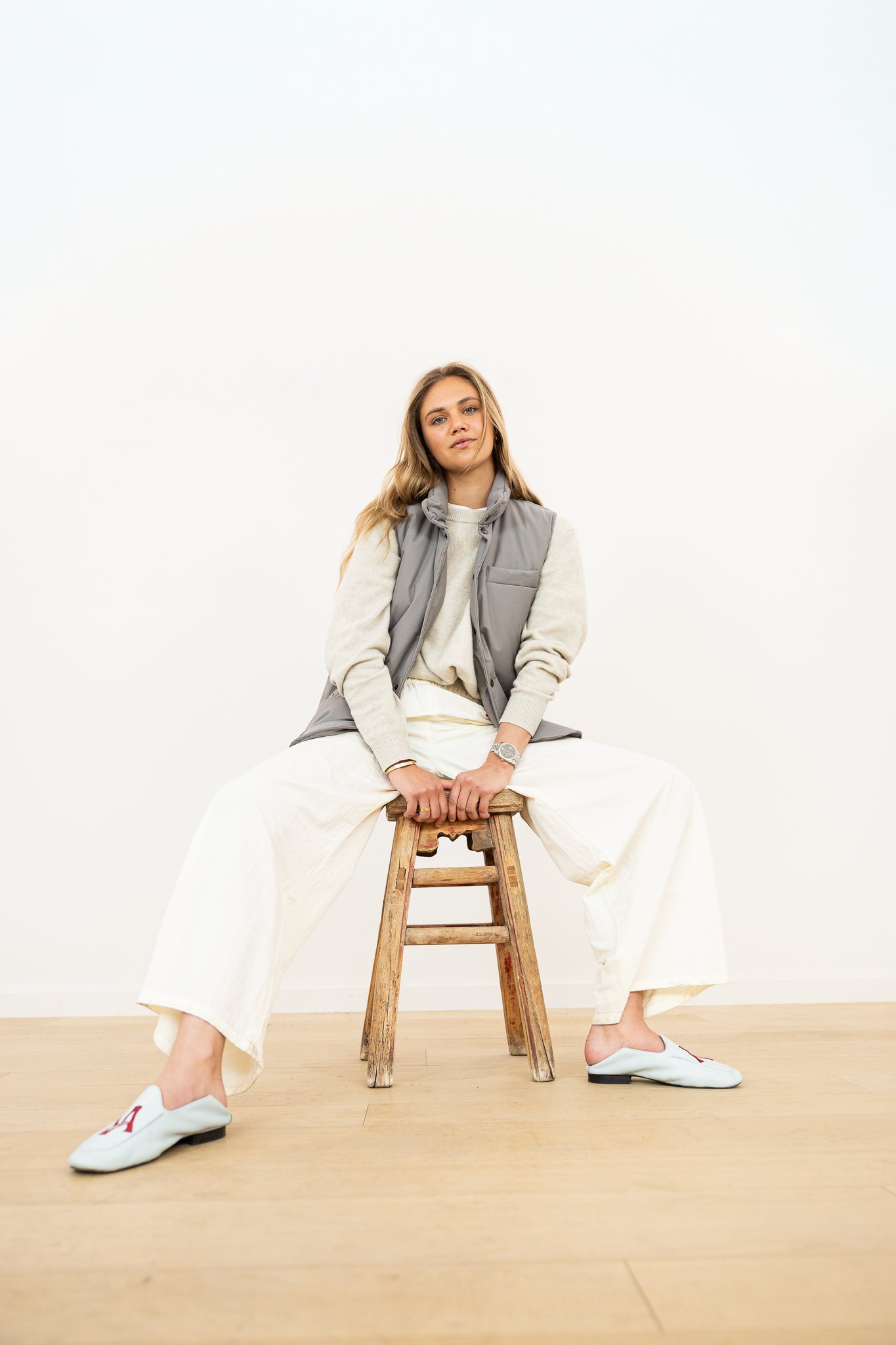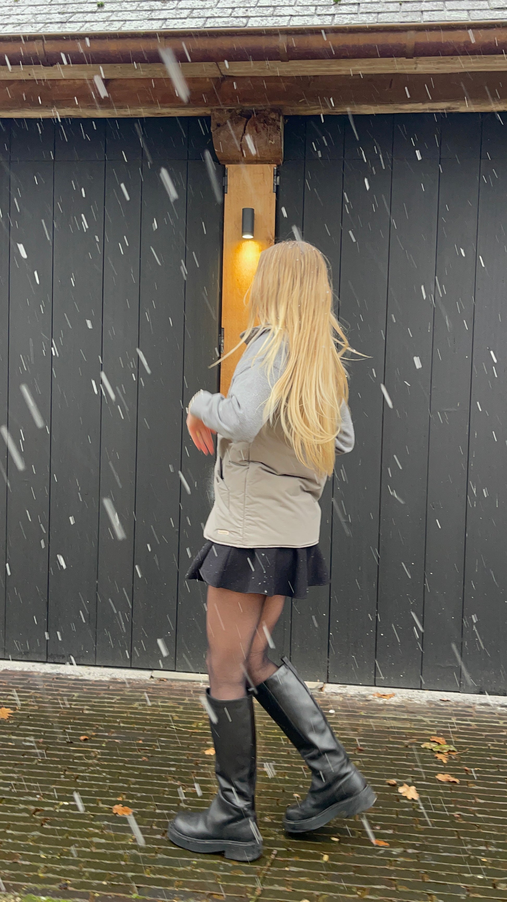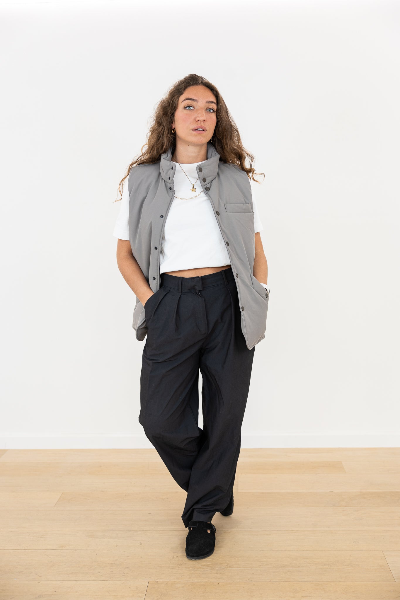 This vest is the ideal option for midseason days. Made from a sustainable blend of organic cotton and recycled polyamide, it offers a comfortable and breathable fit. The insulating fill, composed of recycled down and feather fibres, provides excellent warmth and comfort. The Italian water-repellent fabric, woven by Olmetex, offers protection against light rain, while the practical pockets—both inside and out—provide ample space for your essentials. Handmade in the EU, this vest strikes the perfect balance between style, functionality, and sustainability.