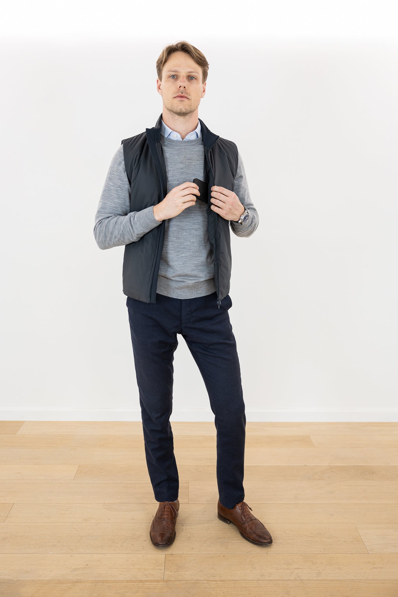 This all-season golf bodywarmer is the perfect blend of style, innovation, and practicality, designed to elevate your performance on and off the course. Crafted from advanced technical fabrics with a stretchable design, it offers exceptional comfort and a tailored fit that moves seamlessly with your body. The breathable, lightweight insulation ensures warmth without bulk, making it ideal for all weather conditions.